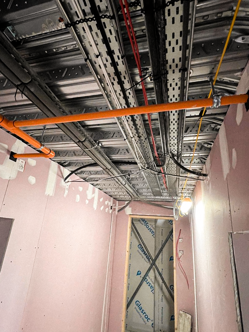 Fire Stopping Certified Fire Stopping Services Certified penetration sealing for service risers, cable trays, pipe runs and ductwork. Installed to tested specifications, photographed and fully documented for inspection and handover. Our Case Studies Request a Quote What Is Fire Stopping and why does it matter? Fire stopping is the process of sealing openings and gaps in fire-rated walls, floors and ceilings to prevent the passage of fire and smoke between compartments. These openings are typically created when mechanical, electrical and plumbing services pass through fire-rated elements during construction. Under Approved Document B of the Building Regulations, all penetrations through compartment walls and floors must be sealed using tested and approved fire stopping systems. This is not optional. Failure to comply can result in failed building control inspections, programme delays and potential legal liability under the Building Safety Act. It is a common misconception that gaps smaller than 40mm do not require sealing. All openings, regardless of size, must be correctly sealed in accordance with the manufacturer’s tested data to ensure compliance and maintain the integrity of the fire compartment. Products we use Tested systems from industry leading manufacturers We work exclusively with the UK’s most trusted passive fire protection manufacturers. Every product we install is third-party tested, fully certified and matched precisely to the tested detail your project requires. What We Do: We deliver a fully managed fire stopping service from initial survey through to final handover, covering every stage of the process to ensure your project is compliant, fully documented and delivered on programme. Survey & Assessment: Before any installation begins, we carry out a detailed survey of the building to identify all penetrations requiring fire stopping. We cross-reference the fire strategy and architectural drawings against site conditions, picking up discrepancies between design intent and what has actually been built. Where penetrations have been routed without consideration for fire stopping, a common issue when we are engaged after M&E installation, we identify the problem early and work with the site team to agree a practical solution before it becomes a programme risk. What We Do: Installation: Our installers are FIRAS-certified and trained to install fire stopping systems strictly in accordance with the manufacturer’s tested specifications. We work with products from the UK’s leading manufacturers including Quelfire, Rockwool, FSi and Promat, selecting the correct system for each individual penetration based on the substrate type, service configuration, annular gap and required fire rating. Whether it is a single cable penetration through a plasterboard partition or a complex multi-service transit through a concrete floor slab, every seal is installed to the tested detail; not approximated, not improvised. We cover the full scope of fire stopping applications including service penetrations for cables, cable trays, conduit, pipework (both combustible and non-combustible), ductwork, busbars and mixed-service openings. We also seal linear gap joints at wall-to-floor and wall-to-ceiling junctions, head-of-wall details and any other breaches in the fire compartment line. What We Do: Documentation & Traceability: Every seal we install is photographed, logged and recorded with full traceability back to the manufacturer’s tested detail. Our handover documentation includes photographic evidence of each installation, the product and test reference used, the substrate and service configuration, and confirmation that the seal has been installed within the scope of the manufacturer’s approval. This documentation is prepared to satisfy building control, third-party inspectors and Gateway sign-off without delay or rework. Remedial Fire Stopping: Not every project starts with a clean slate. We regularly carry out remedial fire stopping works where previous installations have failed inspection, where seals have been damaged by follow-on trades or where fire stopping was missed entirely during the original build. We survey the extent of the deficiency, agree a scope of remedial works and carry out the installation with the same level of careand documentation as any new build project. Request a Quote Frequently Asked Questions What standards do your fire stopping installations meet? All of our fire stopping installations are carried out in accordance with BS EN tested standards and comply with Approved Document B of the Building Regulations. We are FIRAS certified, meaning our work is subject to regular independent audit by Warringtonfire. Do you provide documentation for every fire stopping installation? Yes. Every seal is photographed, logged with a unique reference number and compiled into a detailed record of works. This documentation includes the products used, the tested detail reference, the location of the installation and the operative who completed the work. Can you work around other trades on site? Absolutely. We coordinate with your site team to sequence our fire stopping works around other trades. With early engagement, we can plan our programme to avoid clashes and keep your project moving without delays. Do gaps under 40mm still need fire stopping? Yes. It is a misconception that gaps under 40mm do not require sealing. All openings in fire-rated elements must be sealed in accordance with the manufacturer’s tested data, regardless of size. Which fire stopping products do you use? We work with industry-leading manufacturers including Rockwool, Quelfire, Nullifire, Protecta and Promat. The specific product is selected based on the tested detail required for each penetration type and substrate combination. Contact